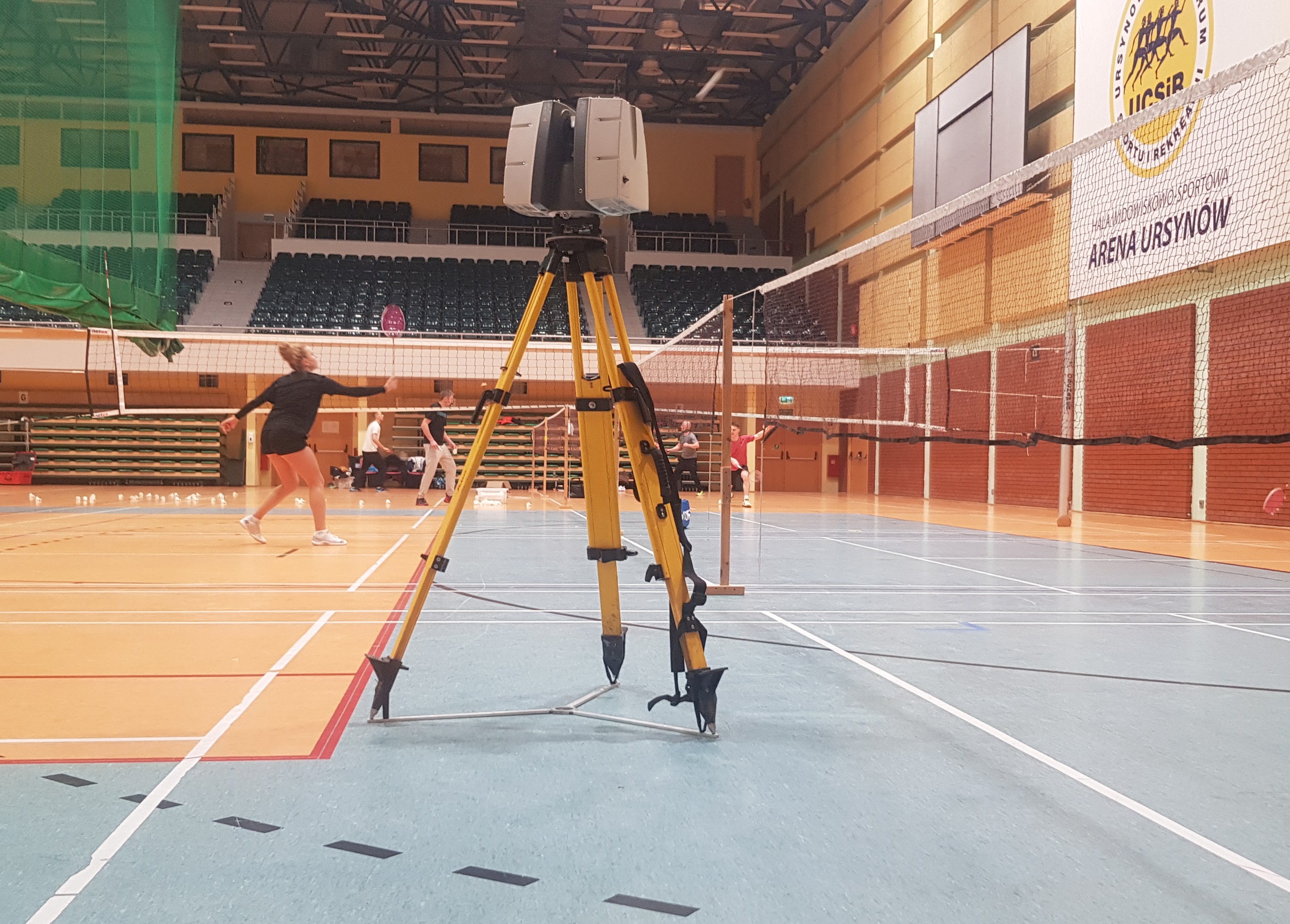 Pomiary wykonaliśmy przy użyciu skanera laserowego P50, dzięki czemu pozyskane dane charakteryzowały się milimetrową dokładnością. Pomiar całej hali trwał około 2 godzin i udało się go wykonać nie przerywając odbywających się na obiekcie zajęć sportowych.