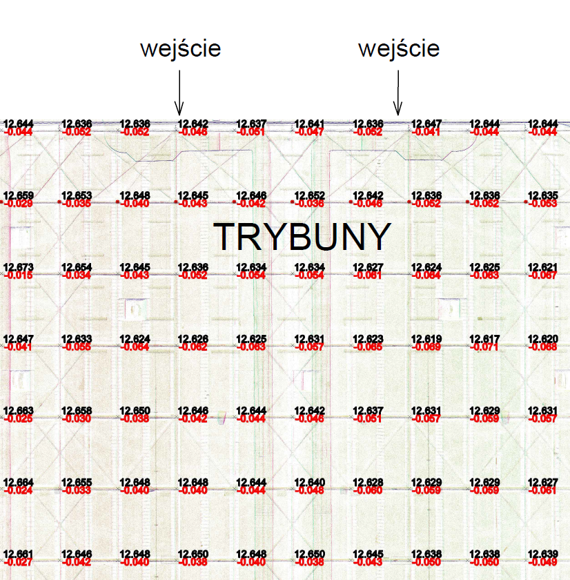 Co ciekawe, największe zidentyfikowane ugięcia konstrukcji nie występowały dokładnie w połowie dźwigarów, a około 1/3 odległości od jednej ze ścian. Zastosowanie innej metody pomiaru ograniczającej się do pomiaru wybranych punktów charakterystycznych (np. niwelacji geometrycznej lub tachimetrii) nie tylko byłoby bardziej uciążliwe, ale także dostarczyłoby mniej kompletnych danych.