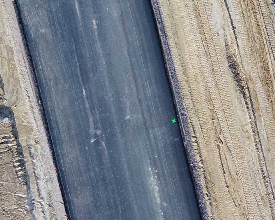 Na podstawie zdjęć opracowaliśmy ortofotomapę o rozdzielczości 2cm/piksel oraz NMT (Numeryczny Model Terenu) o dokładności wysokościowej <5cm. Produkty te, wraz z otrzymanym od Zamawiającego modelem stanu "zerowego" (opracowanego przed rozpoczęciem budowy) posłużyły do wykonania obliczeń objętości wykonanych nasypów i wykopów.