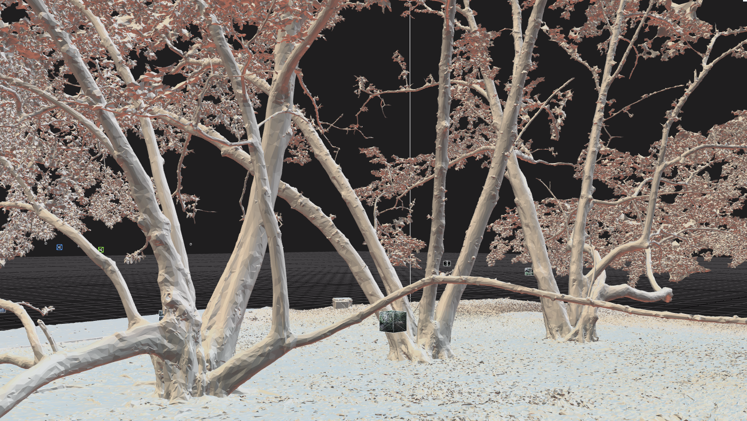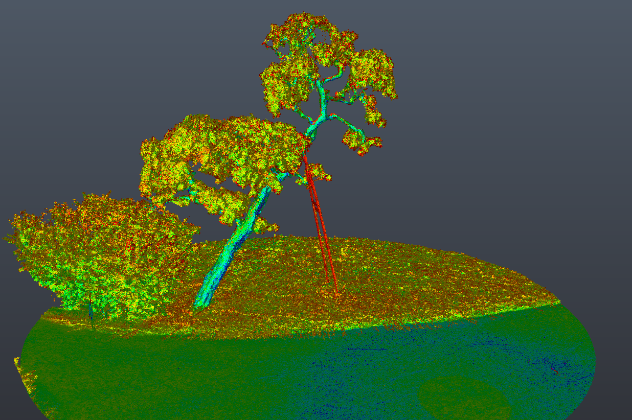 Każde z drzew zostało zeskanowane z kilku-kilkunastu stanowisk skanera laserowego z bardzo wysoką rozdzielczością – umożliwiło to uzyskanie dużej liczby punktów na powierzchni gałęzi drzew, pomimo obecności liści. Po odpowiednim przefiltrowaniu danych, wykonaliśmy modele 3D opisujące wymiary i położenie wszystkich gałęzi.