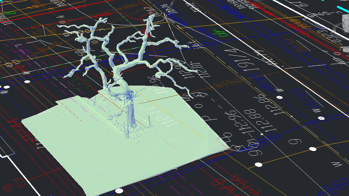 Poza modelowaniem 3D, naszym zadaniem było opracowanie map do celów projektowych – w przypadku dysponowania aktualnymi chmurami punktów z naziemnego skaningu laserowego nie wymagało to praktycznie żadnych dodatkowych prac terenowych. Opracowane mapy finalnie mogły być analizowane jednocześnie z modelami 3D i chmurami punktów w środowisku CAD.