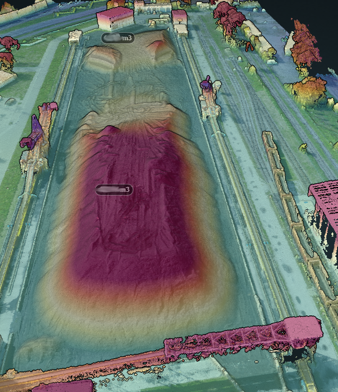 Aby udokumentować przed Zamawiającym dokładność pomiarów ze zdjęć, wykonaliśmy pomiar kontrolny kilkuset punktów na powierzchni hałd i porównaliśmy wysokości odczytywane z chmur punktów z tymi, pomierzonymi klasycznym sprzętem geodezyjnym. Średnia różnica między tymi dwoma metodami pomiaru wyniosła ok. 3-4cm, co przy chropowatej powierzchni hałd jest jak najbardziej satysfakcjonującym wynikiem. Modele fotogrametryczne pozwoliły na pomiar objętości hałd z dokładnością <1%. Wyniki pomiarów zostały udostępnione Zamawiającemu zarówno w formie papierowego raportu, jak i w naszej dedykowanej aplikacji webowej.