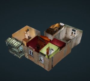 Fragment chmury punktów obrazującej wnętrza budynku mieszkalnego. Dane pozyskane na potrzeby inwentaryzacji architektonicznej.