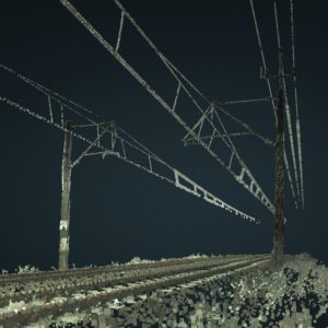 Trójwymiarowy pomiar około 100m linii kolejowej wraz z przewodami trakcyjnymi.