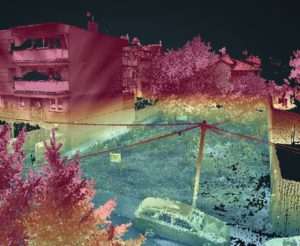 Na etapie opracowania mapy do celów projektowych, z kilku stanowisk skanera pozyskano chmurę punktów obrazującą otoczenie działki, na której planowano wybudowanie nowego, przylegającego do istniejących, budynku.
