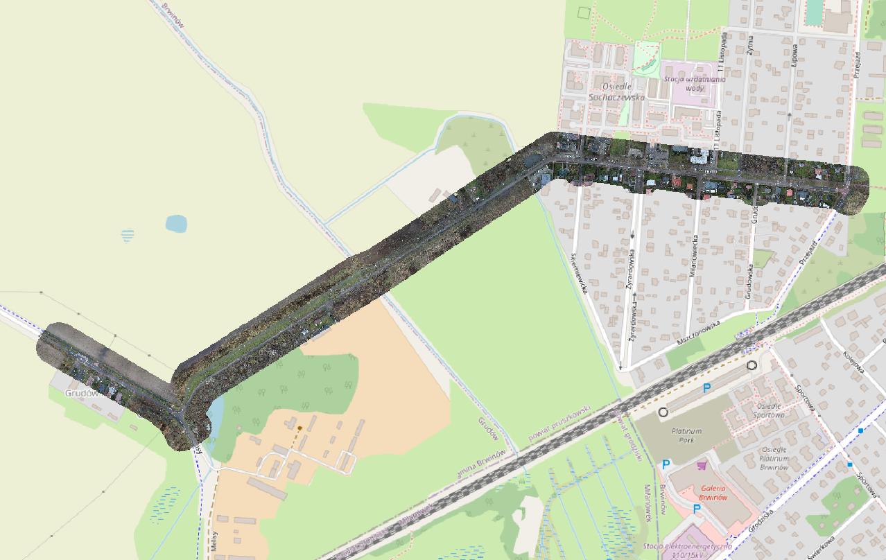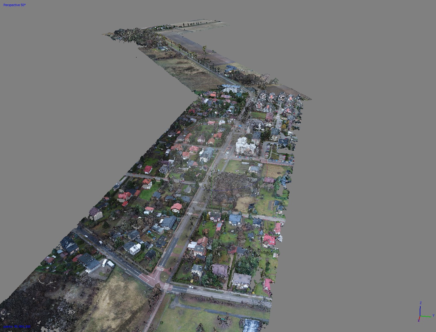W ramach jednego z ostatnich zleceń wykonaliśmy precyzyjne modelowanie terenu i powierzchni asfaltu/chodników wzdłuż ul. Sochaczewskiej w Brwinowie z wykorzystaniem LiDAR.