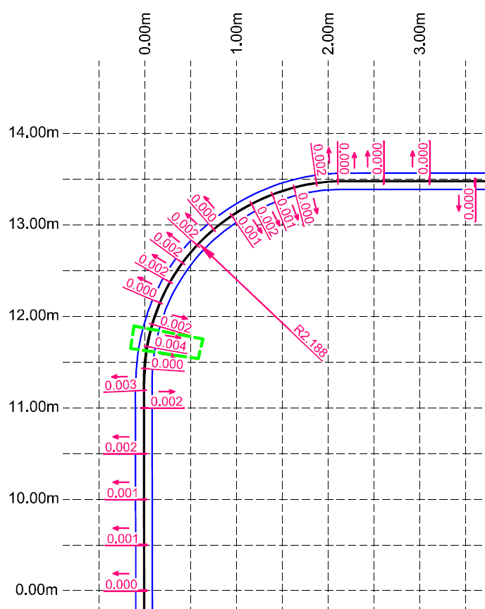 - określenie promieni łuków kołowych