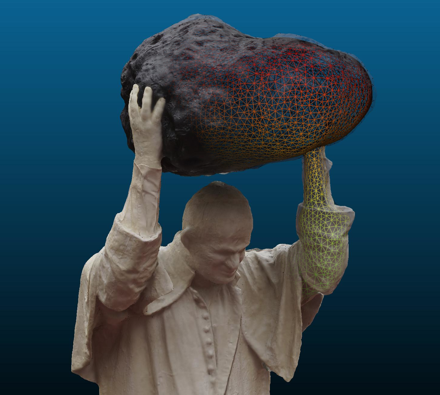24 września 2020r. przed Muzeum Narodowym w Warszawie miało miejsce oficjalne odsłonięcie instalacji “Zatrute Źródło”. Figura Jana Pawła II, trzymającego nad głową czarny głaz budzi w mediach wiele kontrowersji – dla tych, którzy nie mieli okazji obejrzeć instalacji na żywo przygotowaliśmy jej fotogrametryczny model 3D: